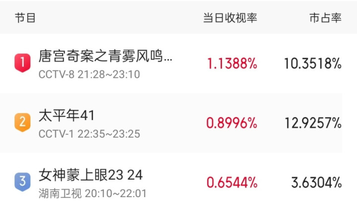 而收视率方面也不甘落伍,光速反超《太平年》登上全网收视第一。