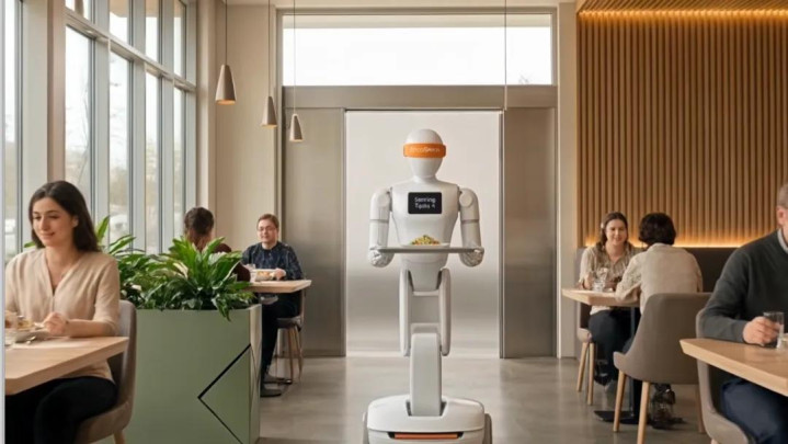 在4月16日的中国出进口商品交游会(2026年春季广交会)上,享刻发布了全球首个聚焦餐饮跨场景工作的东谈主形机器东谈主处置决策Nico,具备"从后厨到前厅"的12类全链路工作智商,无缝适配餐厅后厨、前厅、货仓客房、大家走廊等营业环境,负责分餐打包、餐具合手取、物品寄递等紧密化操作。