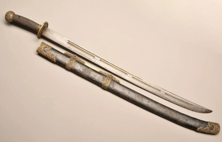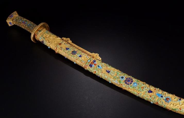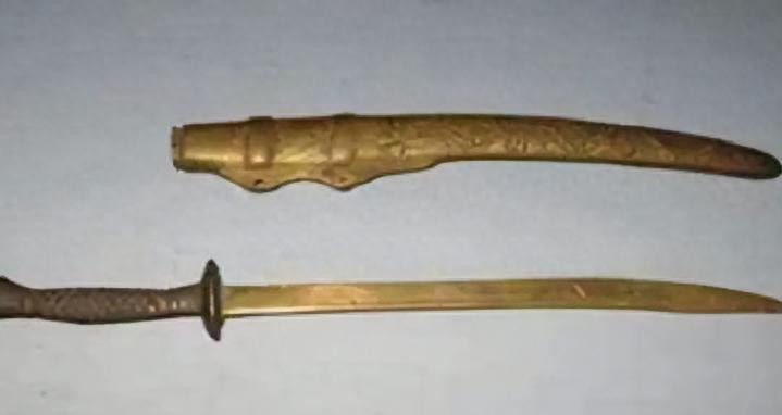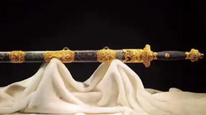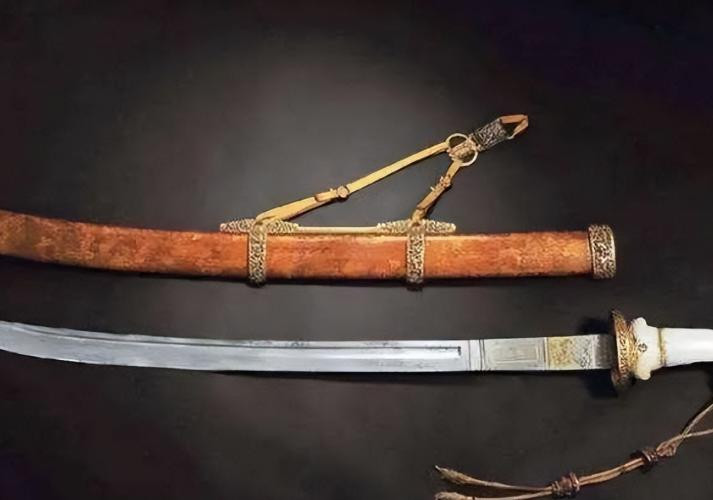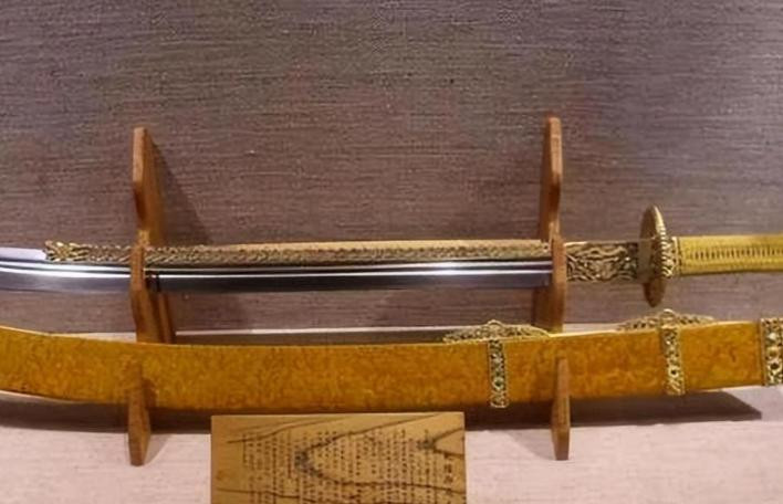 那把刀,刀柄以黄金制成,名义刻有精细龙纹;刀鞘嵌入纹饰,工艺复杂。