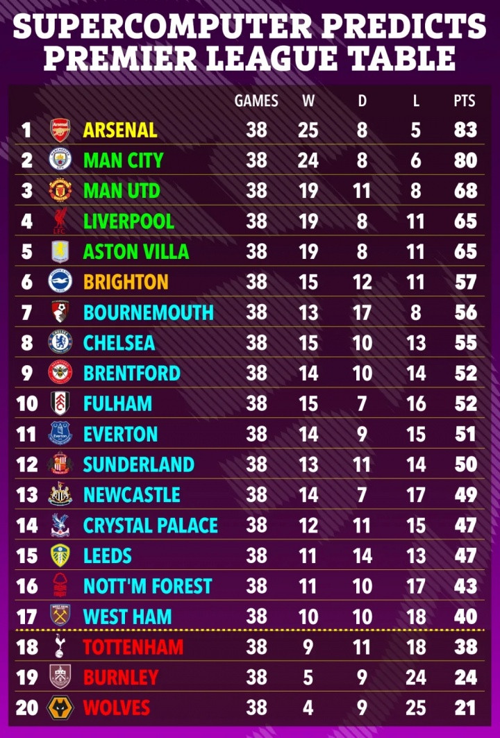 超算瞻望英超最终积分榜