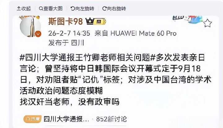 2月6日这天,四川大学终究是急弗成耐了,连夜发布通报,宣称已建立使命专班,正经启动对考虑事件的探望使命。