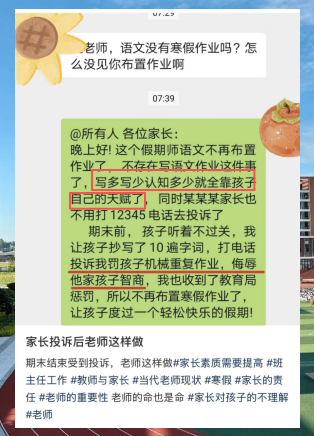 期末稽查甩手后,班级群里家长一句“语文莫得寒假功课吗?”,本是寻常请安,却成了压垮骆驼的终末一根稻草。淳厚回话得尽是憋闷:“不再交代功课了,全靠孩子资质,也省得有东说念主打12345投诉。”
