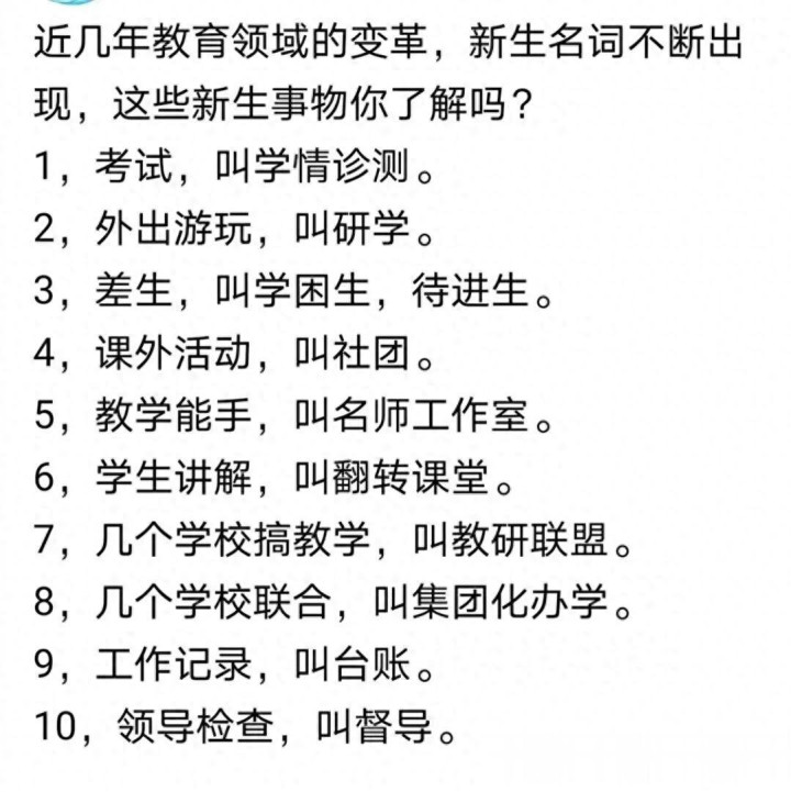民众在房子里关起门,新名词一酌量,提醒鼎新就出来了,底下西席为了评优,举着新名词的旌旗冷冷清清,反复砥砺一节课,搞出所谓样板课,进行实行,有木有“样板戏”的既视感?