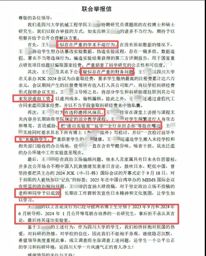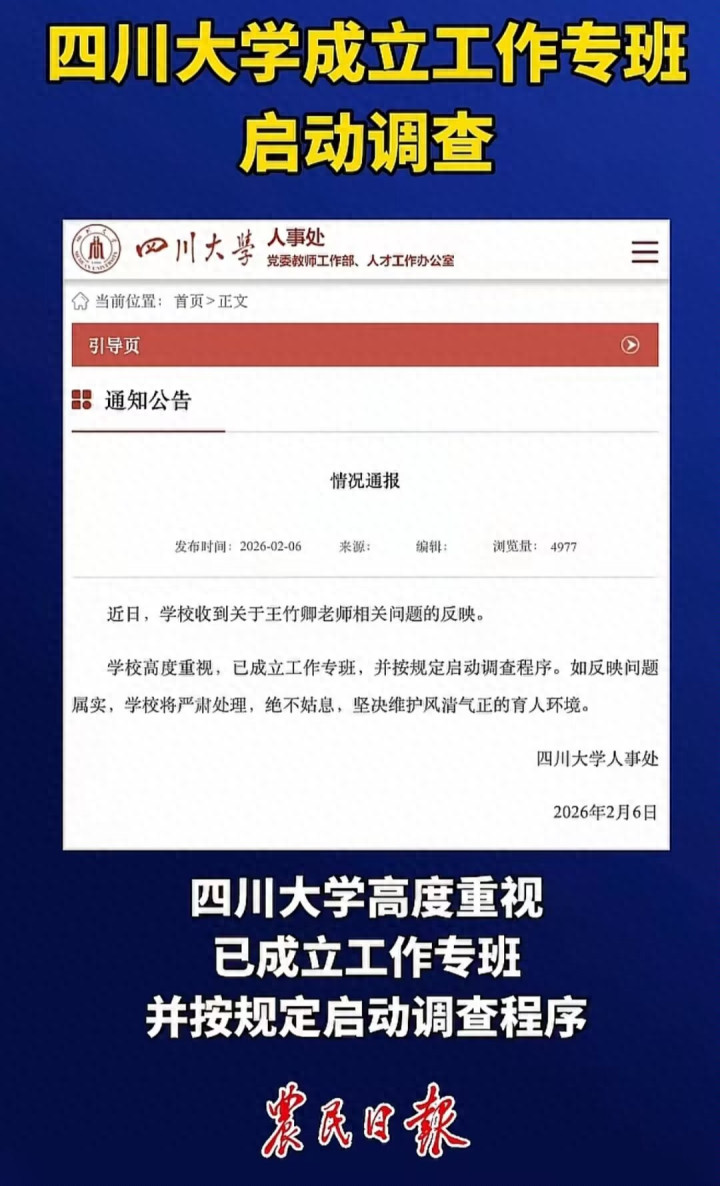 川大博导王竹卿事件曝出以后,着实让东谈主三不雅尽毁,没念念到堂堂一个大学考验尽然是这么的品行,更莫得念念到这些象牙塔中的学生确实要忍耐这么的遭受。