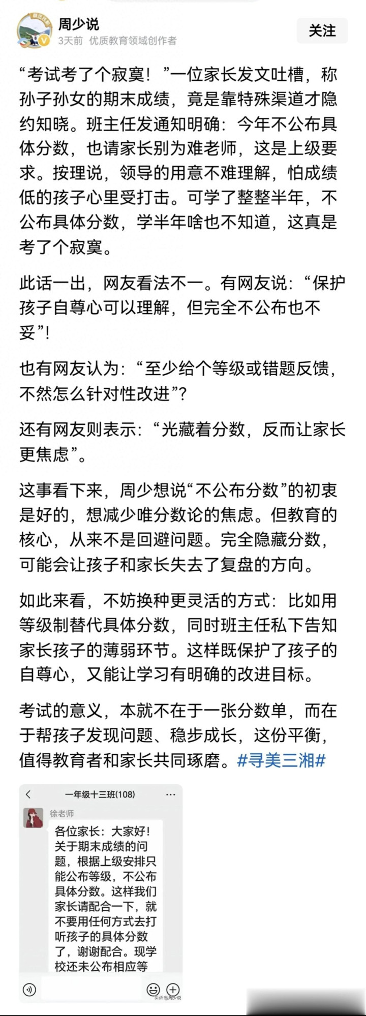 只消东说念主们不成更正领路不雅念,让阶段性考试分数归来会诊的功能,公布分数得益照旧不公布分数得益,皆会让学生、家长焦急错愕。