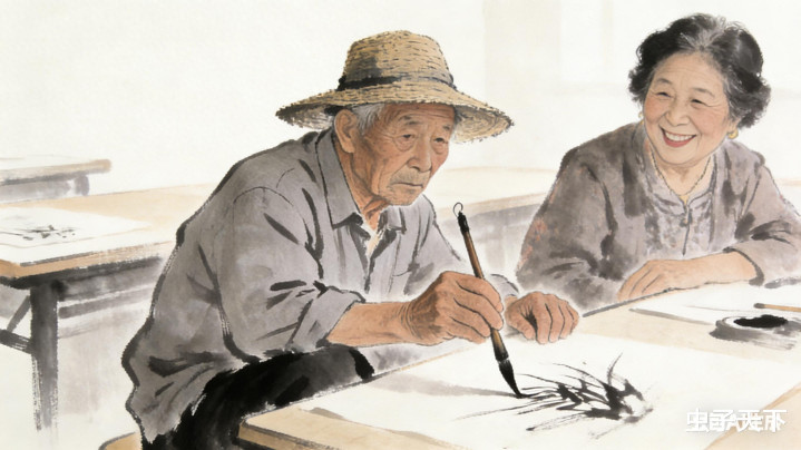 社区老年大学招画画班,居委会张婶硬拉着他去:“李叔,去耍耍!总比蹲墙根强!”