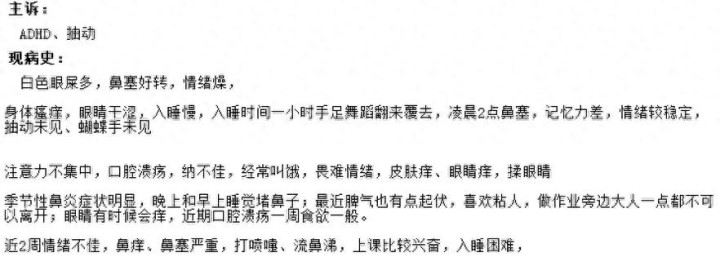 同期他还患有ADHD,孩子姆妈跟我响应,说他重视力不采集的情况比拟严重,情愫也不太平定,缅想力差,还时时常会有一些抽动的表露。