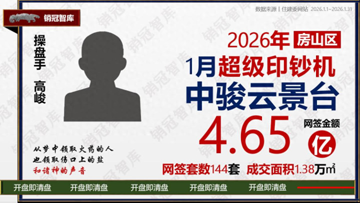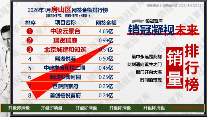 2026年1月,中骏云景台网签金额为4.65亿元,拿下房山区商品住宅技俩网签金额名循序一。